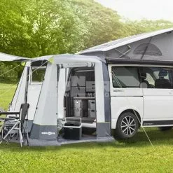 The Easy Camp Crowford tailgate awning is a versatile tailgate awning design, developed to create a flexible space for campervans. Designed to fit VW T5 / T6 / T6.1 (Multivan, Caravelle, Transporter, California) and MB W447 (V-Class, Vito, Marco Polo) vans, the Easy Camp Crowford awning can be simply but securely pitched on your tailgate with included twin guy lines. The toggle-up door of the Crowford tailgate awning features ample walk-in height for easy accessibility, and can be raised as a canopy to provide extra shelter from the sun and rain.